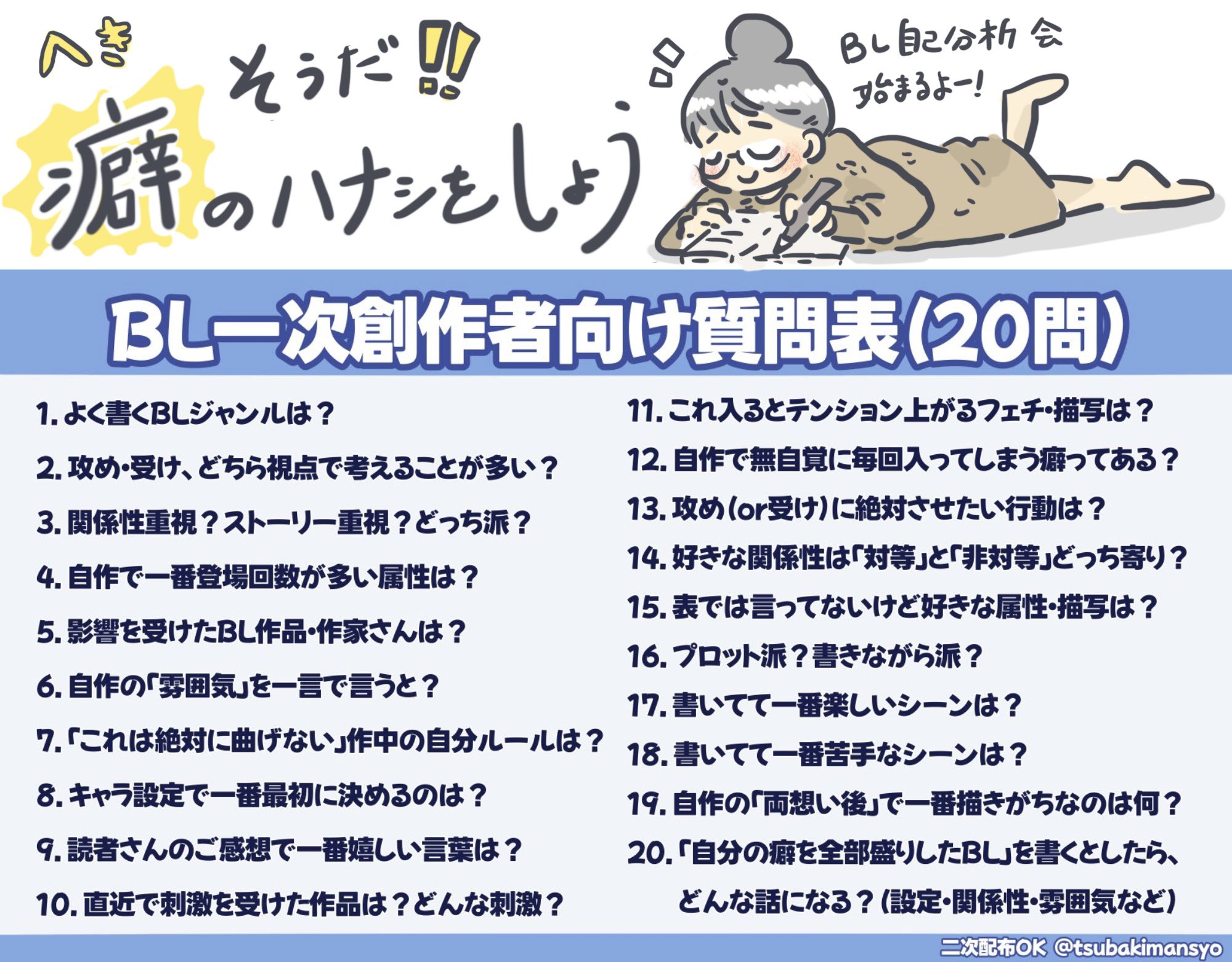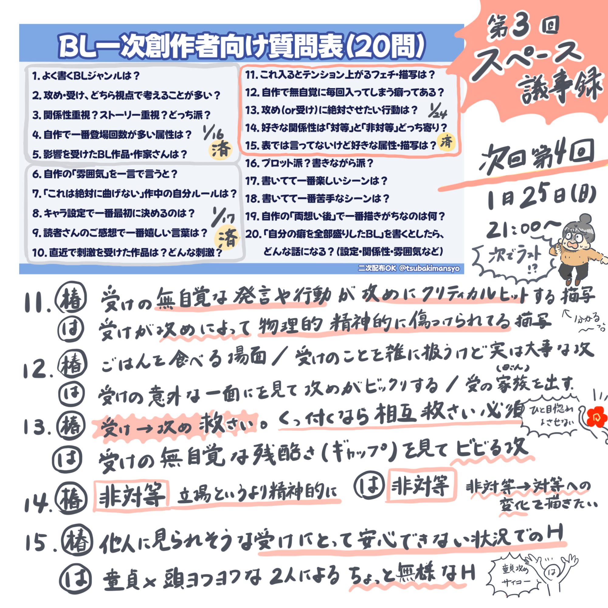 今回は、1月に創作友達の椿さんとXにて開催した【BL癖自己分析会スペース】について書いていこうと思います。